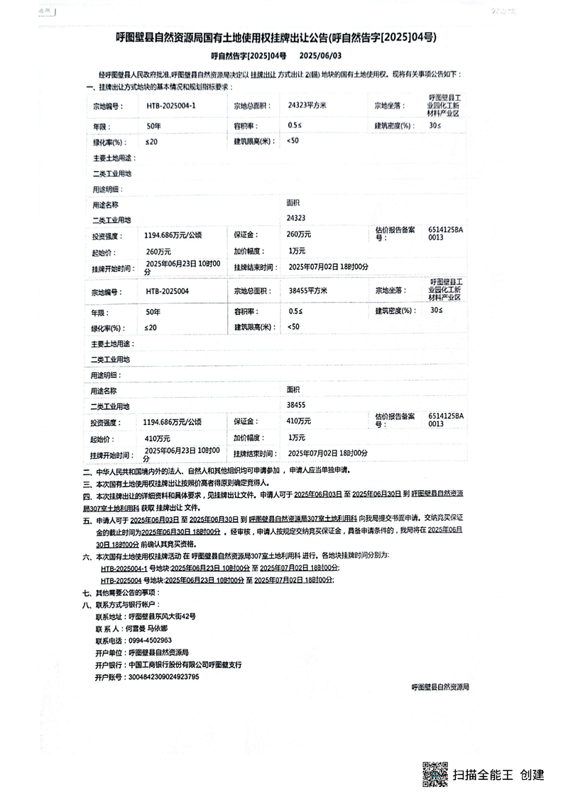 呼图壁县自然资源局呼自然告字〔2025〕04号 HTB-2025004国有土地使用权挂牌出让交易公告