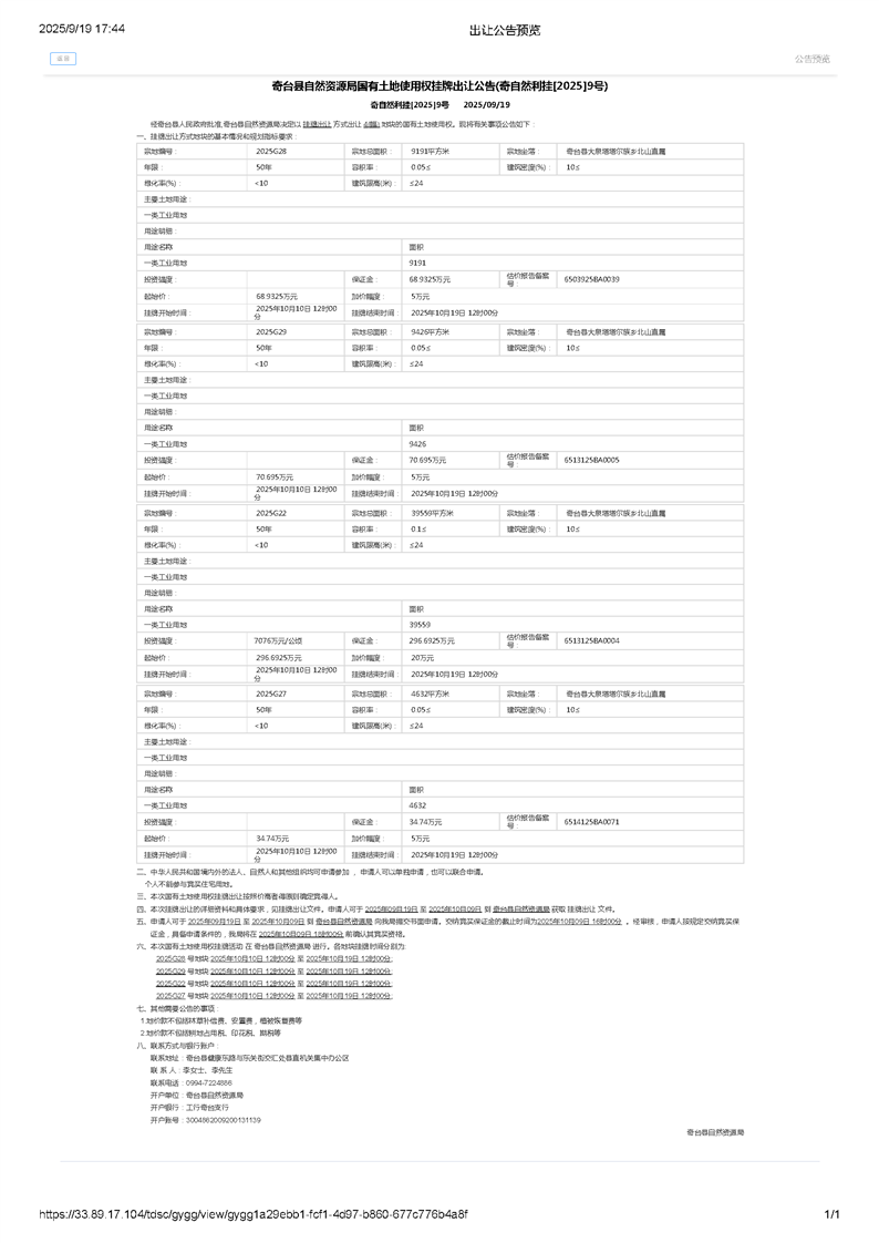 奇台县自然资源局奇自然利挂[2025]9号国有土地使用权挂牌出让公告