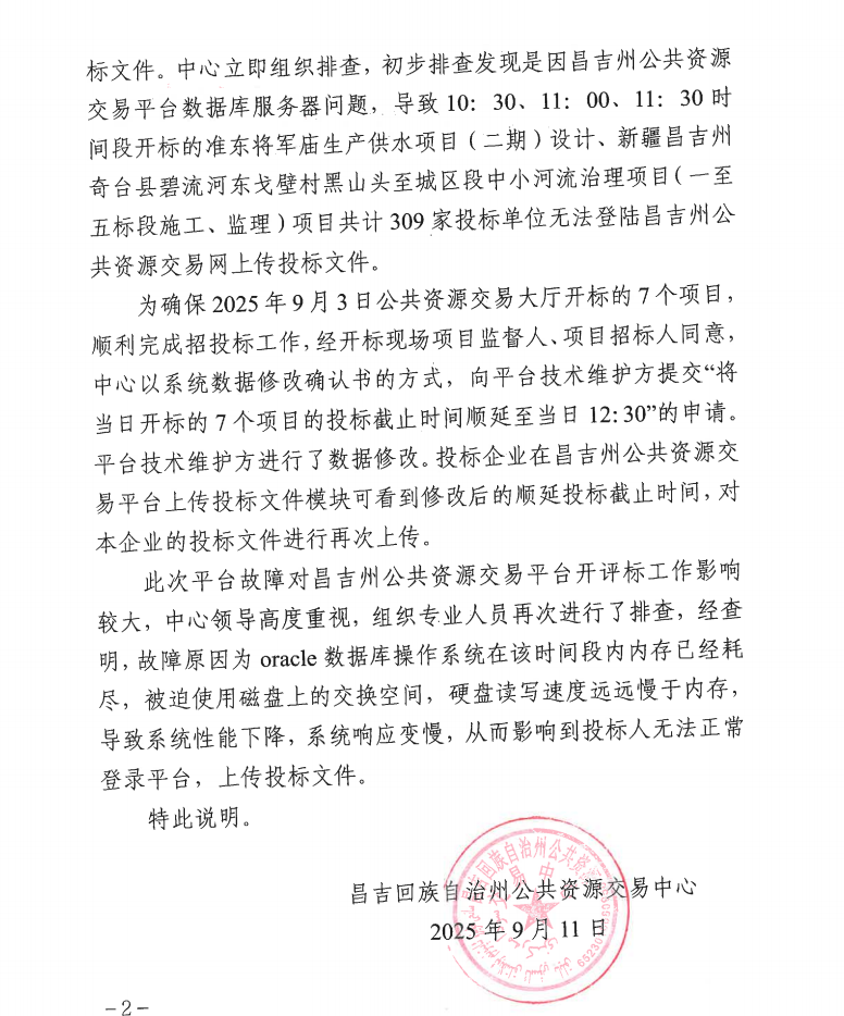 关于昌吉州公共资源交易平台2025年9月3日上午10:00-11:00断断续续出现无法登录的情况说明